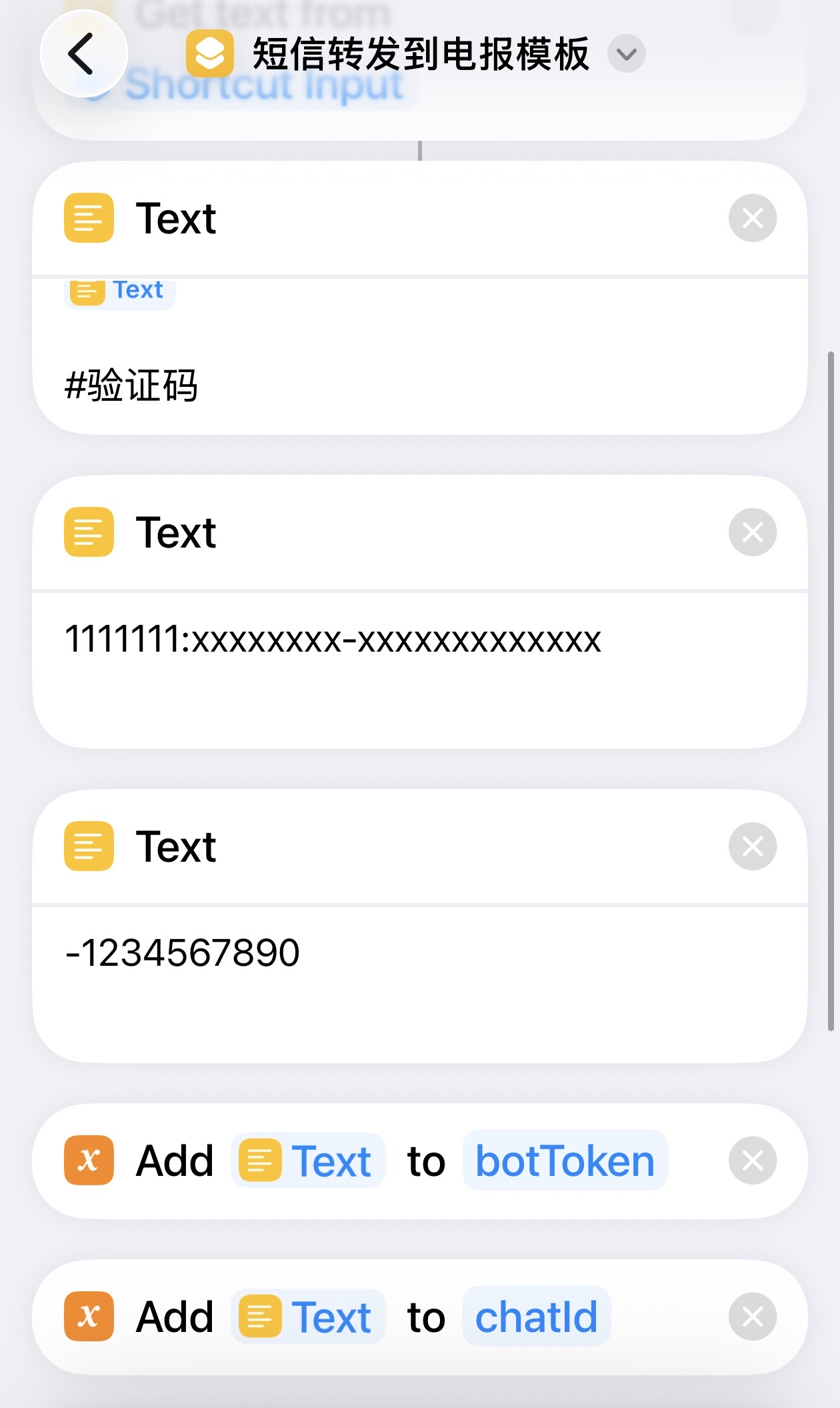 短信转发到电报模板: https://www.icloud.com/shortcuts/d29307c5c6b344ddaf92537d18a315e9